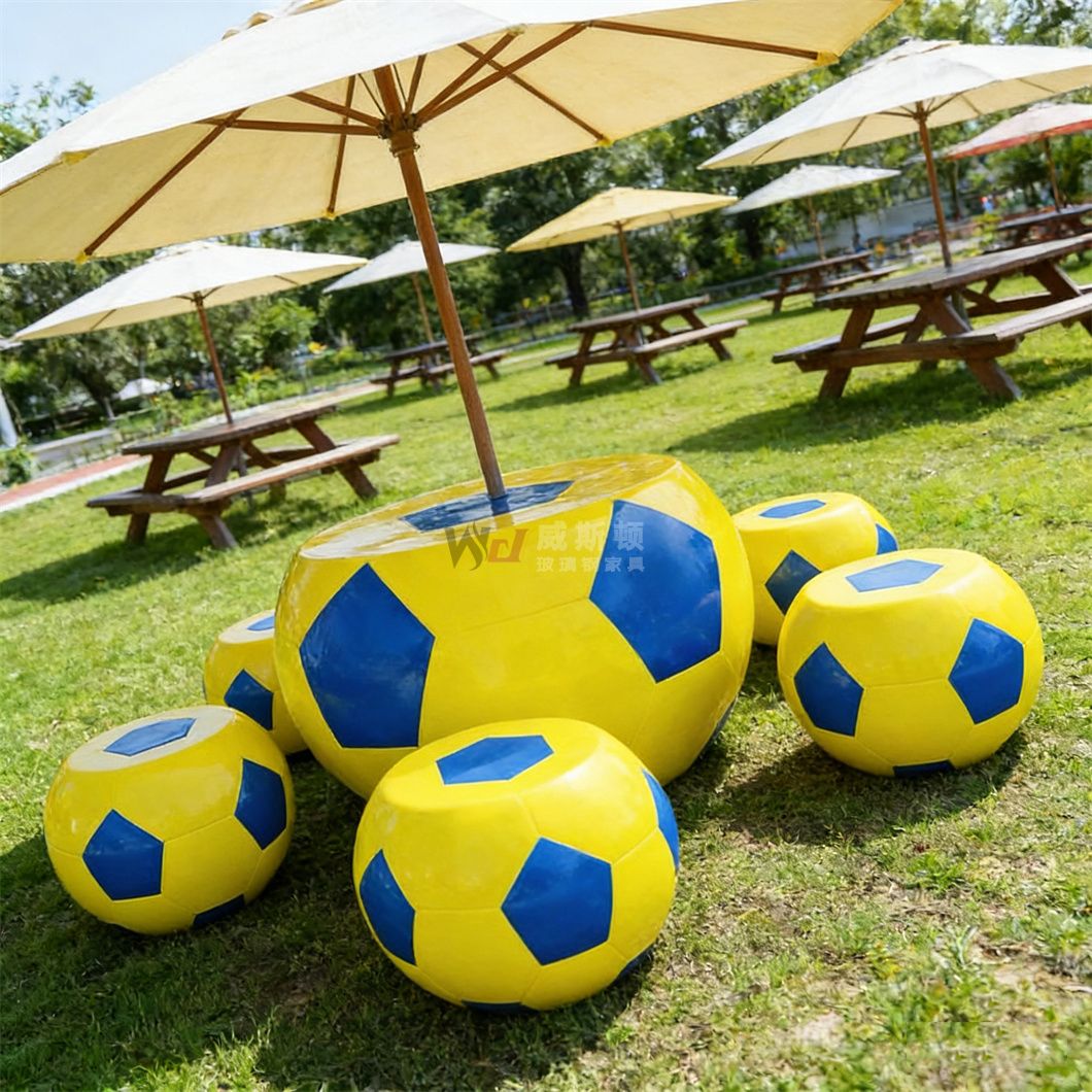 玻璃钢足球造型茶几桌子家具产品生产工艺流程:一、制作模具威斯顿玻璃钢模具费根据客户提供图片造型及图纸进行开模,终由客户确认模具(1:1的产品)看是否需要修改,直